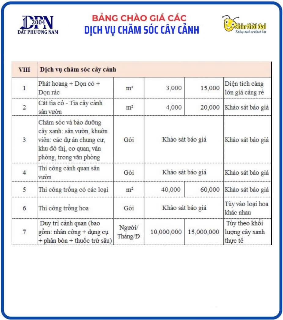 4. Giá Cả Hợp Lý: Chúng tôi cung cấp nhiều gói dịch vụ với mức giá cạnh tranh, đảm bảo mang đến giá trị tốt nhất cho khách hàng. Bạn sẽ tiết kiệm được thời gian và công sức nhưng vẫn có được không gian xanh mát, tươi tắn.