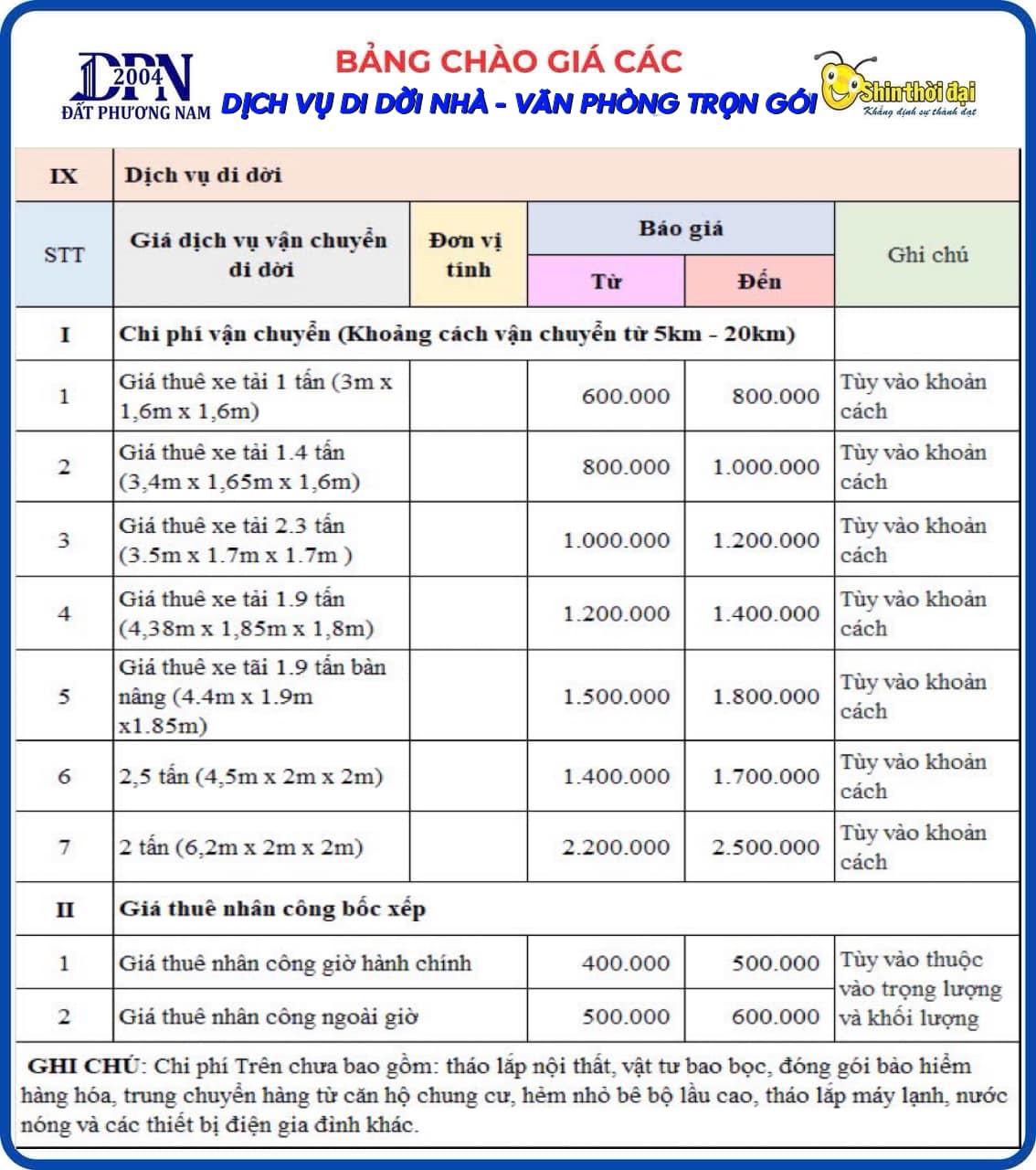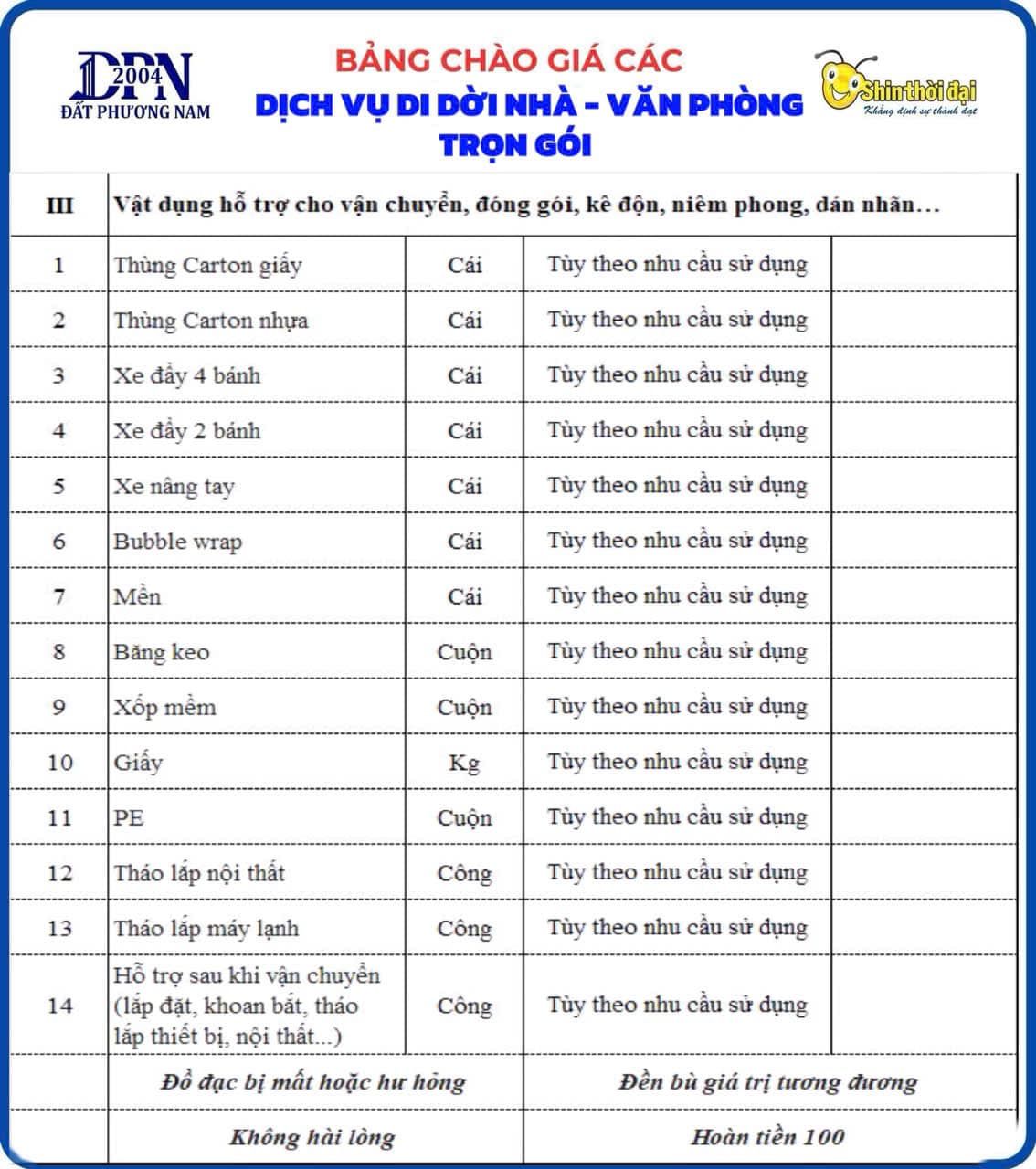 Mỗi khách hàng đều có nhu cầu khác nhau, từ số lượng đồ đạc cần chuyển đến thời gian và địa điểm cụ thể. Nhiều công ty cung cấp dịch vụ di dời nhà – văn phòng trọn gói hiện nay sẵn sàng tư vấn và đưa ra các gói dịch vụ linh hoạt để phù hợp với yêu cầu của bạn.